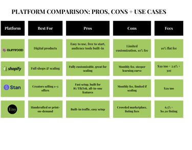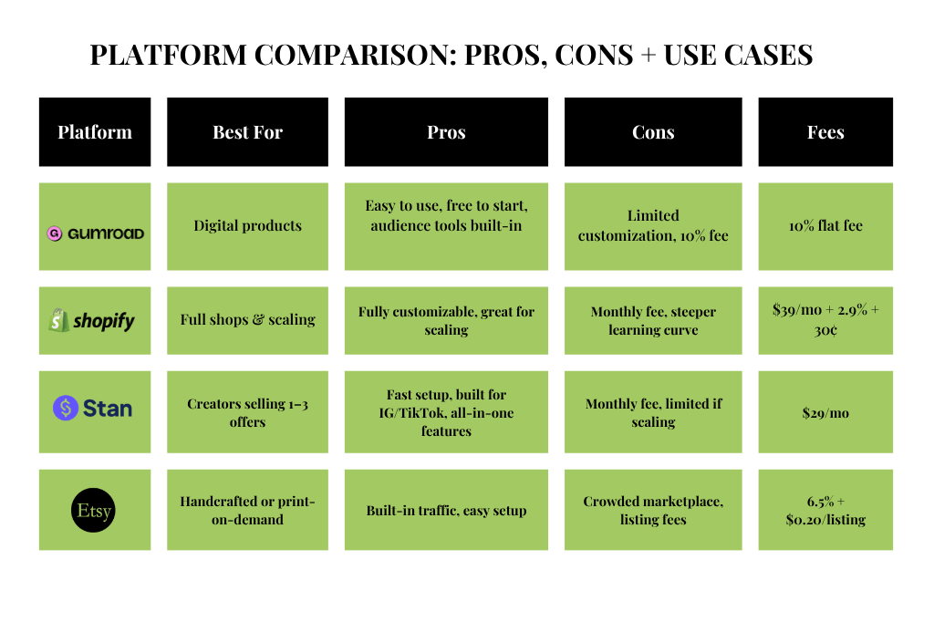 Shopify vs. Gumroad vs. Stan vs. Etsy: What to Use for Your First Offer